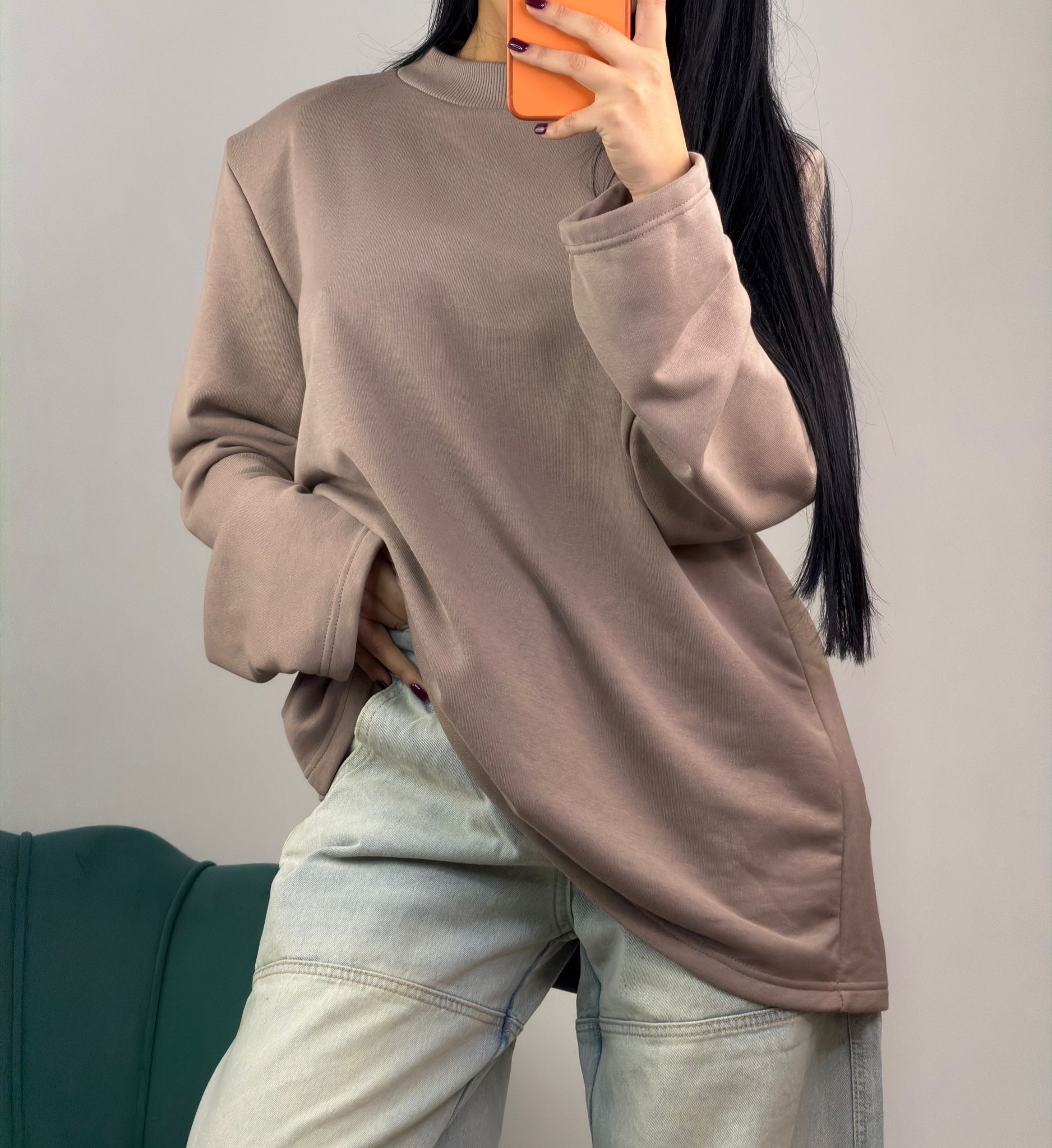 Felpa garzata “Just West” con vestibilità oversize e spalline strutturate.